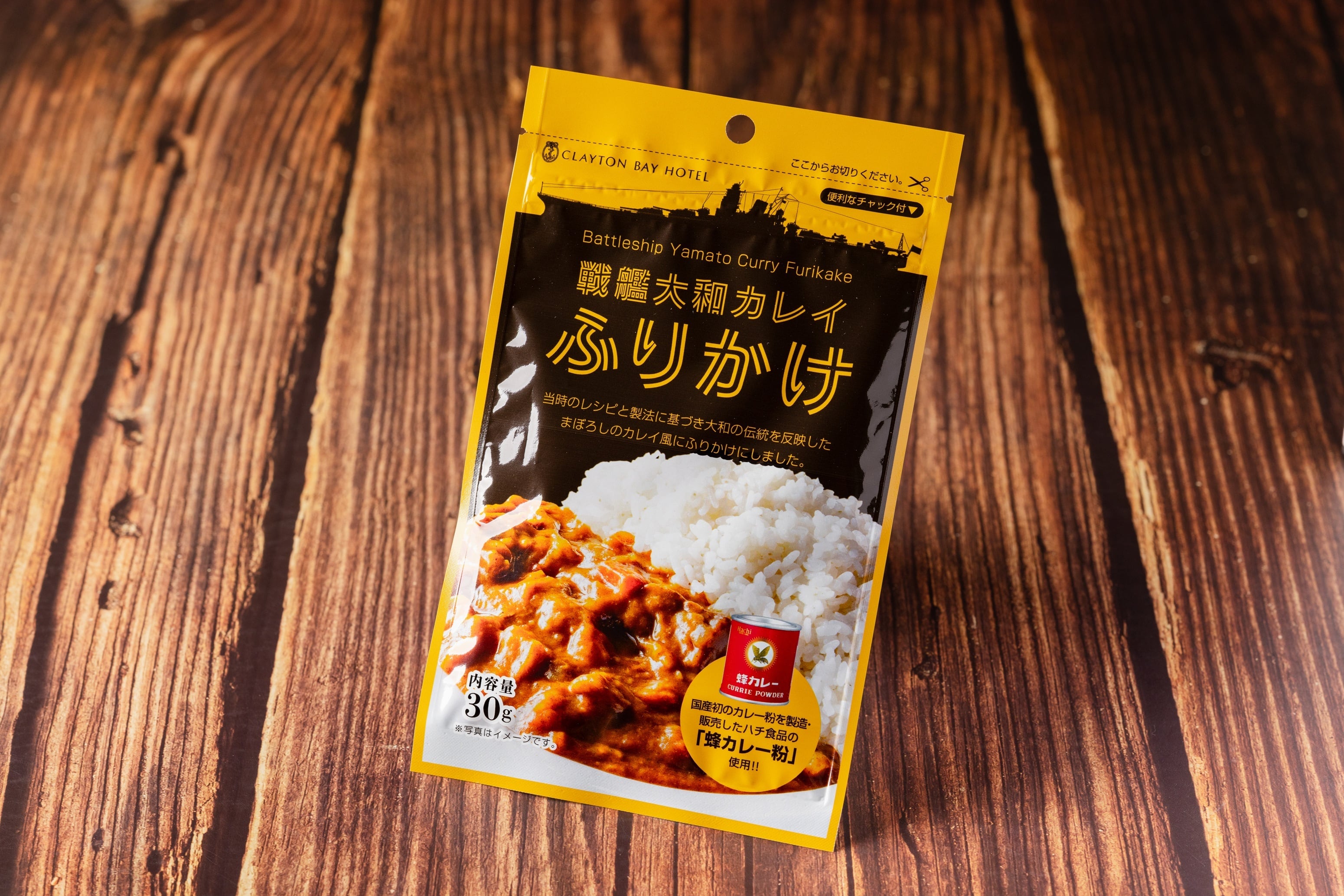 戦艦大和のカレイは海軍料理研究家の高森直史氏の考証と監修を得ており、国産初のカレー粉を製造・販売した老舗ハチ食品株式会社(大阪市西淀川区)の【蜂カレー粉】に、弊社秘伝の香辛料数種を加えております。そんな、「まぼろしのカレイ」を手軽に味わっていただけるよう、ふりかけにしました。